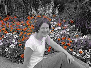 Becky reading her Bible at Luthy Botanical Gardens. |