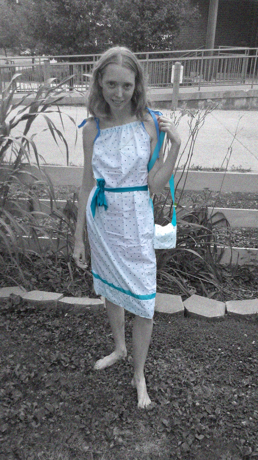 Here is a picture of me modeling the adult dress I made, and a picture of all 4 dresses I made (1 large, 1 medium, 2 small):