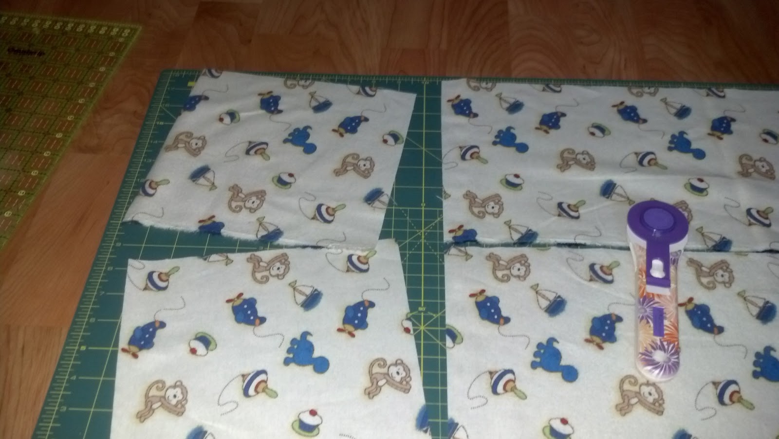 I start with soft flannel in fun prints. I like to buy 1 yd of each print. Then, I cut each yard into ~8 inch strips.